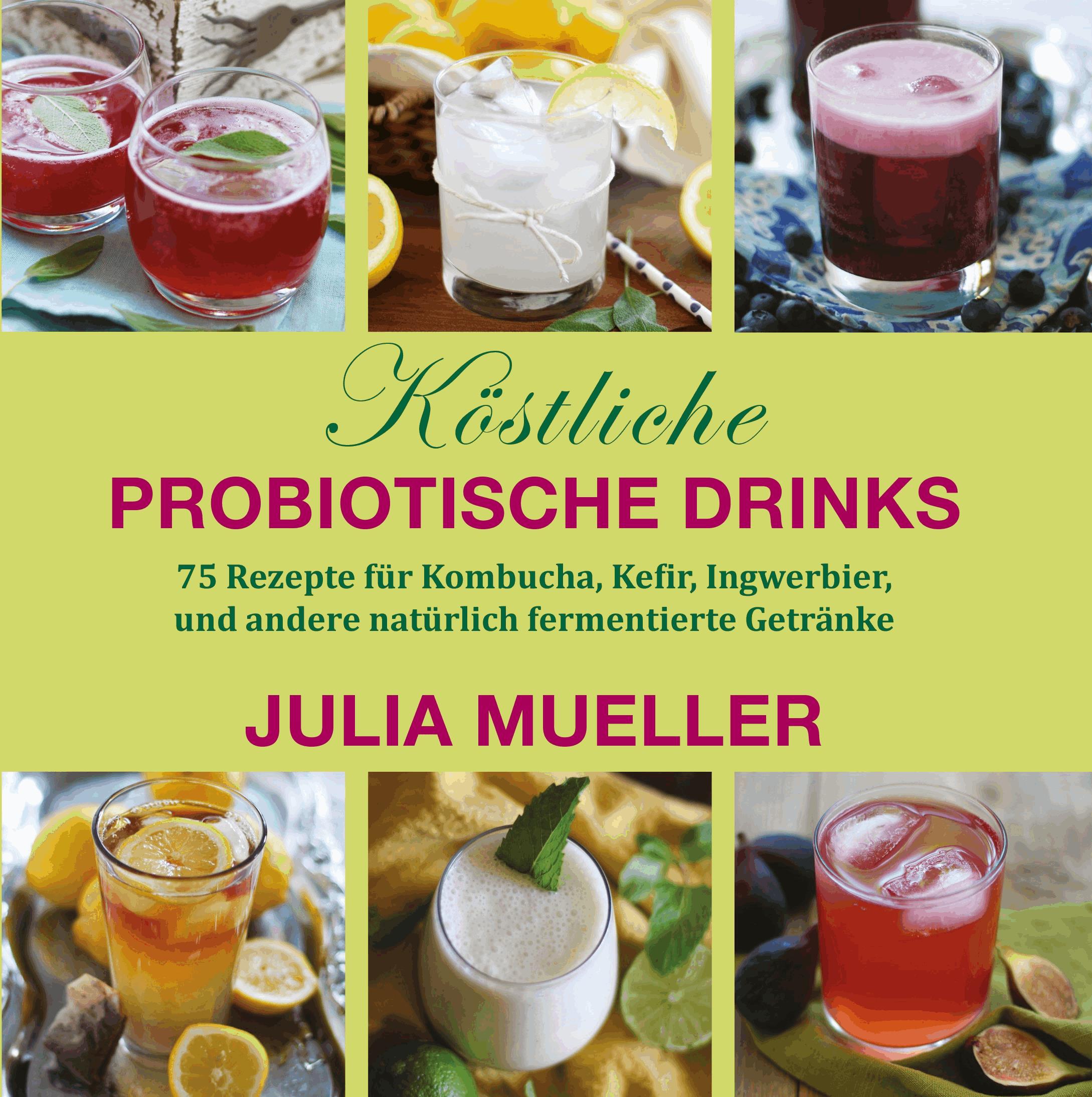 Die gesundheitlichen Vorteile probiotischer Lebensmittel sind kein Geheimnis – Ärzte empfehlen den Einsatz von Probiotica wegen ihrer positiven Effekte auf Verdauung, Metabolismus und das Immunsystem. Kombucha-Enthusiasten weisen auf die hohen Anteile von B-Vitaminen und Aminosäuren hin, welche die Stimmung verbessern, das Energieniveau steigern, die Gelenke beweglich halten sowie die Gesundheit der Bindegewebe und der Haut begünstigen. Nun können Sie lernen, Kombucha wie auch viele andere probiotischen Getränke zu Hause zu brauen. Dies ist die ultimative Anleitung zur Herstellung probiotischer Drinks – mit klaren Schritt-für-Schritt-Anleitungen und hervorragenden Photos. Sie finden in diesem Buch Rezepte für: * Kombucha * Jun * Kefir Lernen Sie, gesunde und köstliche Probiotische Getränke in der eigenen Küche herzustellen! * Lakto-fermentierte Limonade * Ingwerbier * Fermentierte Gemüsesäfte Darüberhinaus finden Sie Rezepte für die Herstellung von Joghurt aus Kuhmilch oder Kokosmilch, sowie eine ganze Sektion über kreative Zubereitung von Smoothies. Getränke zu fermentieren mag wie eine große Aufgabe erscheinen, doch Julia Mueller zeigt, wie es Spaß machen kann, kostengünstigere und besser schmeckende Getränke herzustellen, als man sie im Geschäft kaufen kann!